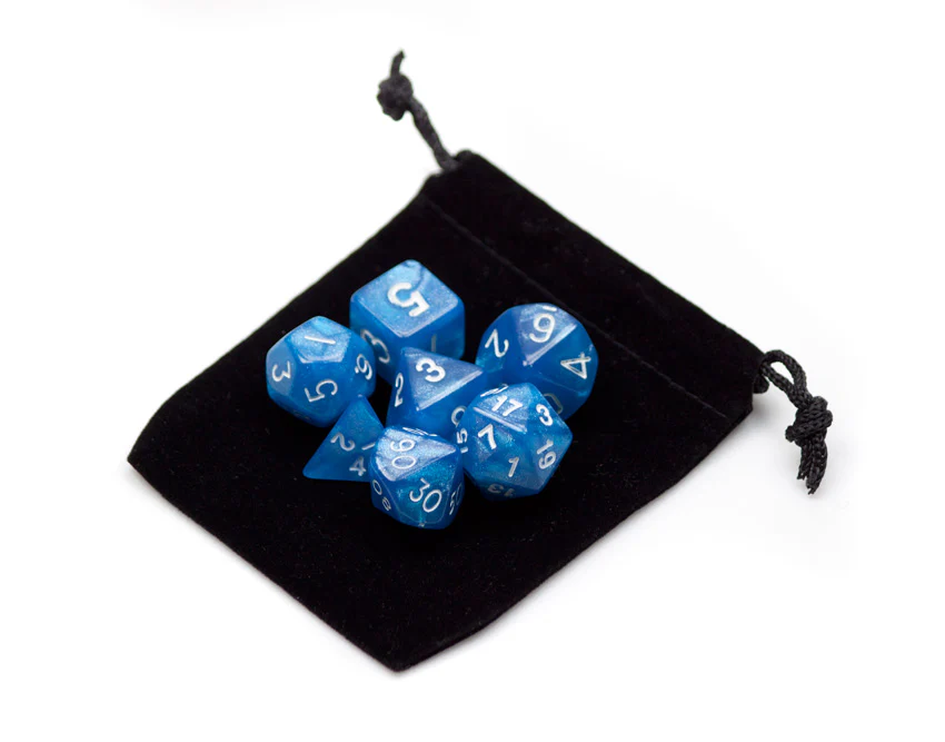 Horizon dice are part of the Wiz Dice Series I collection. Cast in a mesmerizing shade of shimmery blue, Horizon dice are ready for your greatest roleplaying adventures.